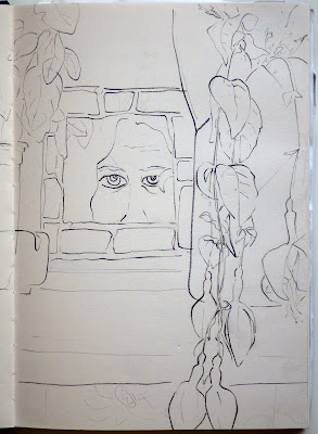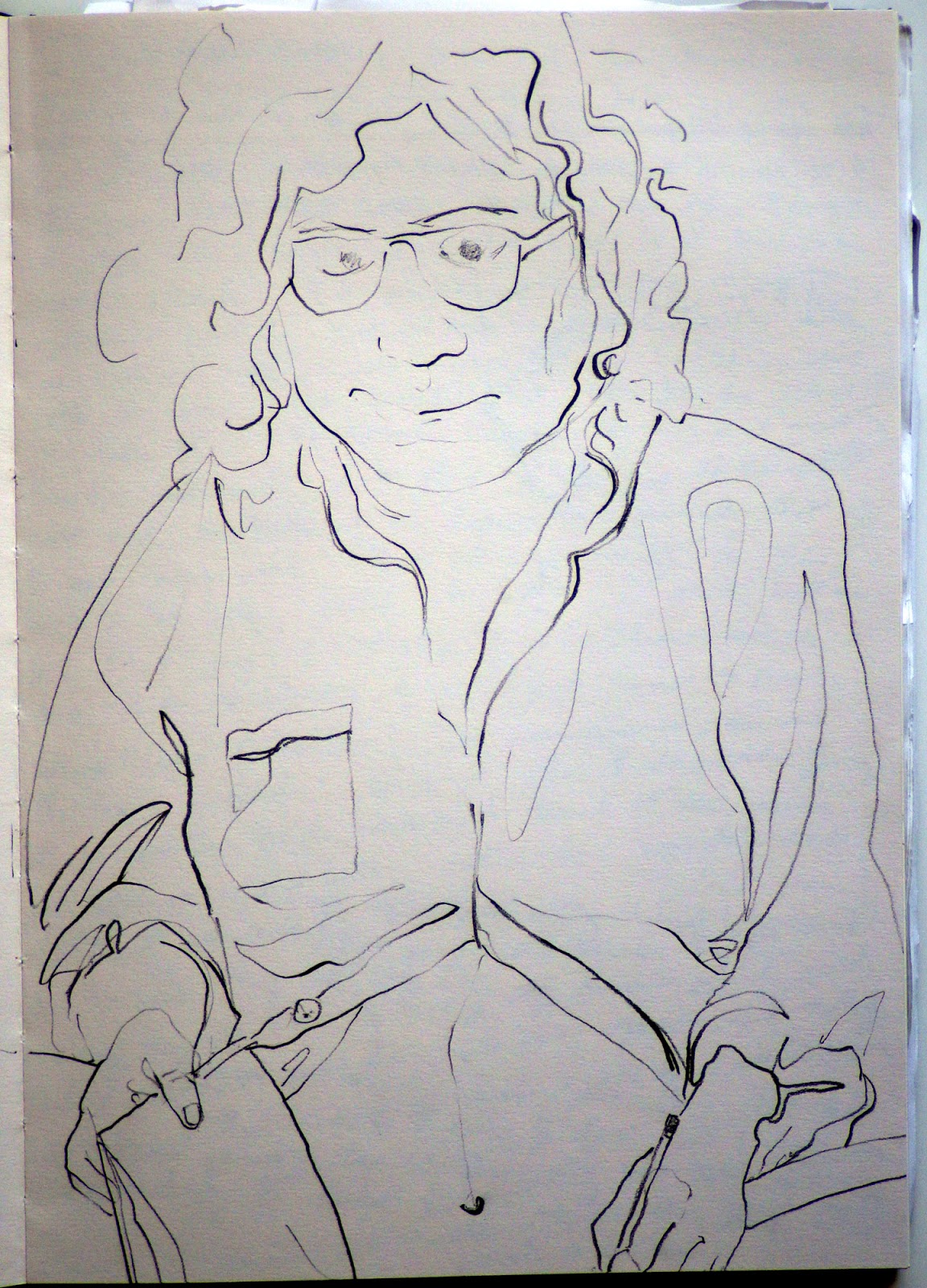 This sketch is also from August 22. I know I was outside with the mini mirror because my glasses have gone dark.