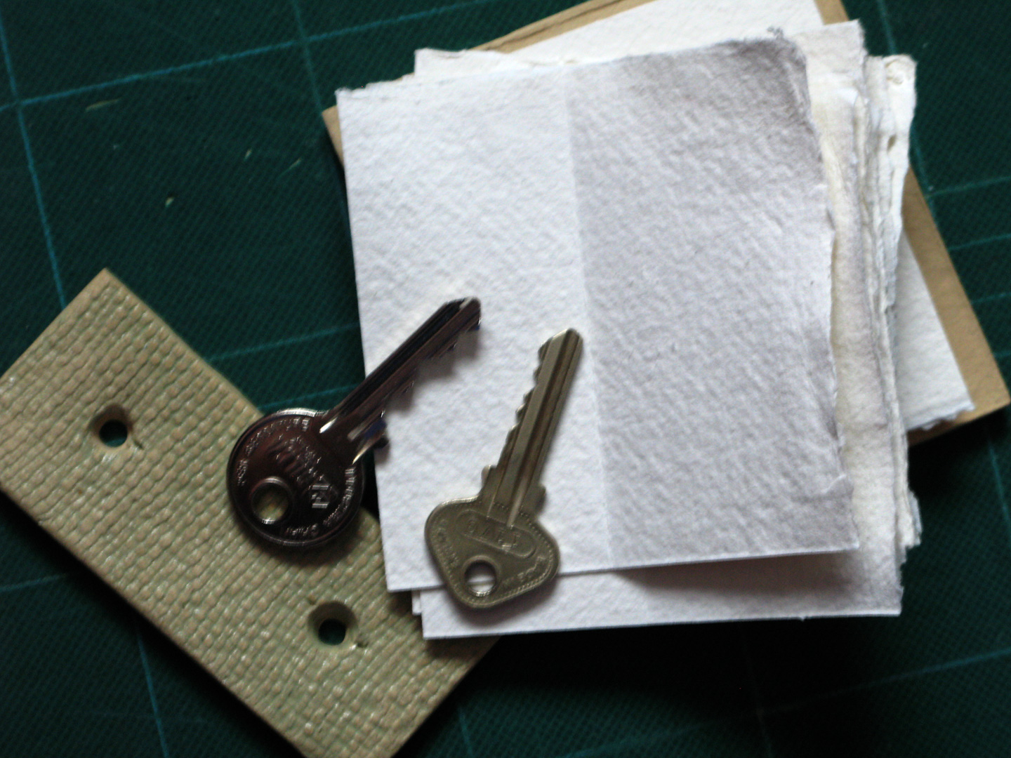 I had the idea for a book of images of a key and prepared pages from handmade Khadi paper, an Indian 100% cotton rag paper.