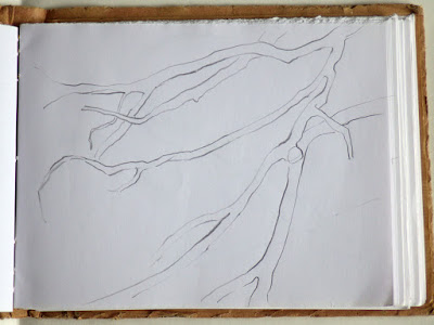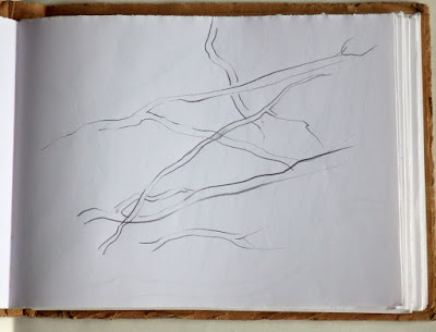 The project involves making books (these sketches are in one of my handmade sketchbooks), prints, and some natural elements like sticks and stones.